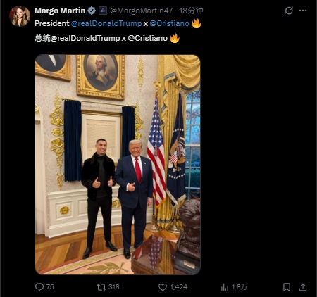 此外白宫官网还发布了C罗携光棍妻乔治娜造访特朗普办公室,与特朗普交说念、合影的组图。