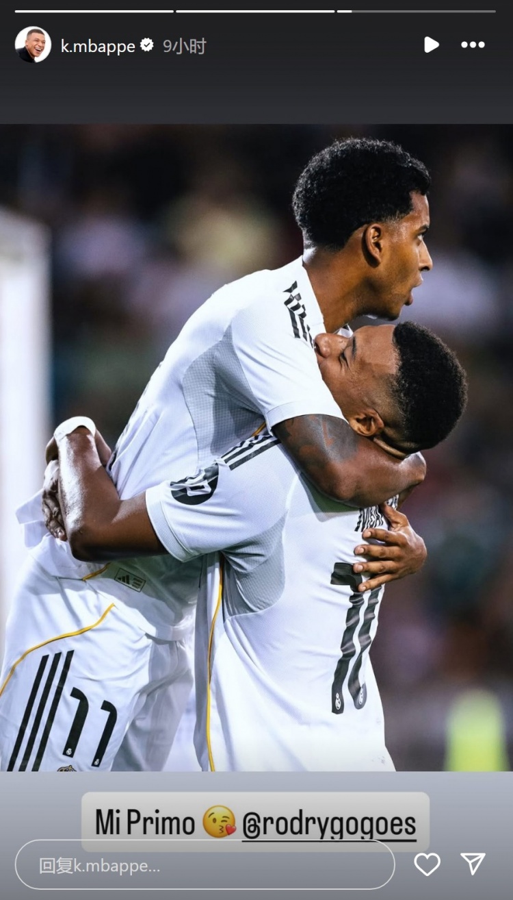 此役姆巴佩2射1传,助攻罗德里戈破门。姆巴佩在外交媒体上晒出庆祝时抱起罗德里戈的相片,配文:“我的兄弟。”
