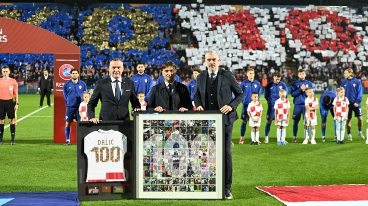 克罗地亚0-0战平捷克的上场比赛,达利奇收尾合手教克罗地亚100场里程碑,对阵直布罗陀赛前他获赠挂牵球衣和相框。