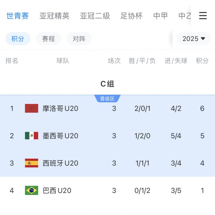 本届世青赛,小组赛阶段摩洛哥2胜1负小组第一晋级,同小组还有墨西哥、西班牙、巴西。