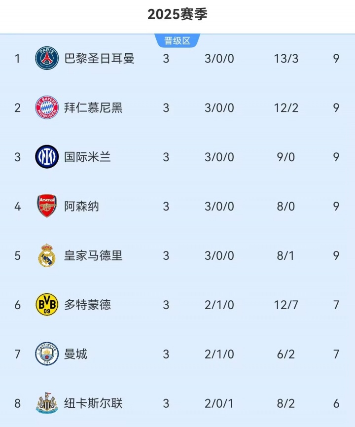 不外,欧冠3轮后与纽卡同积6分的还有巴萨、利物浦、切尔西等6支球队,纽卡因净胜球上风排行跨越。
