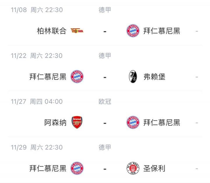 拜仁新赛季开局16连胜,络续刷新我方的记载。拜仁11月还有4场比赛,联赛诀别对阵柏林皆集、弗赖堡和圣保利,欧冠11月27号对阵阿森纳。