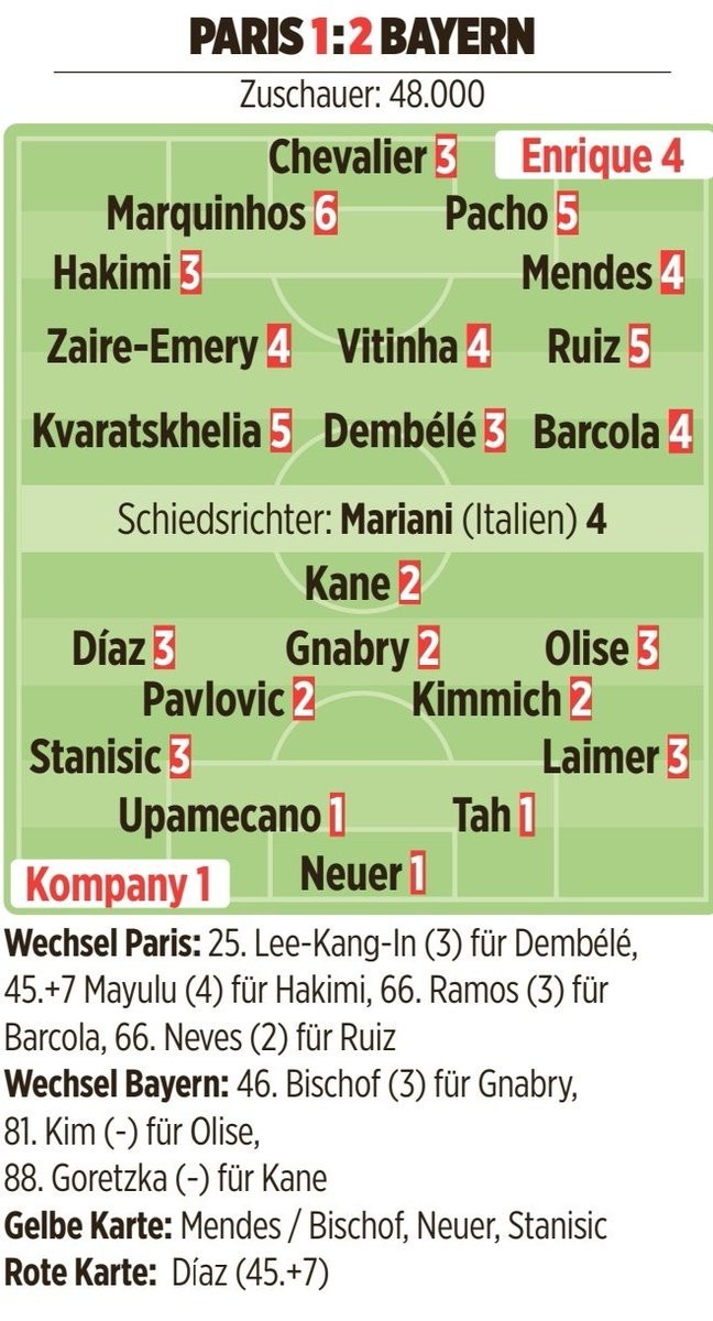 上半时迪亚斯号称是“主导者”。他上来就完成了出色的闪击破门,让莫得干预情状的巴黎吃瘪。之后又是靠我方积极性抢截了马尔基尼奥斯领衔的腐败端,完成破门。2-0后,拜仁顺风顺水胜势在捏。
