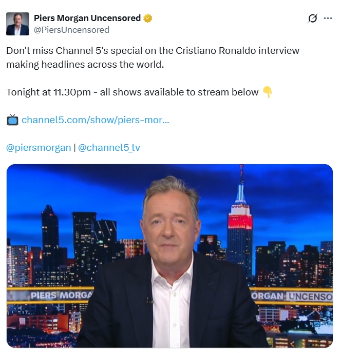 此前摩根接连发布两段C罗的独家专访,其中好多履行成为足坛近两日的热门话题。