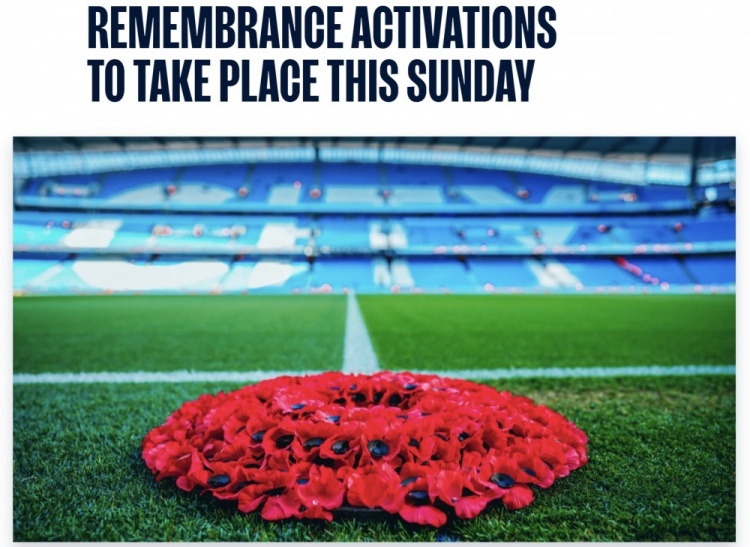 本场比赛在北京工夫11月10日凌晨进行,而英国扬弃将士挂牵日是在11月11日。曼城在俱乐部官网发布公告称:“本周日当利物浦到访伊蒂哈德球场时,俱乐部将举行一系列的挂牵行为,本场英超联赛恰逢英国扬弃将士挂牵日。”