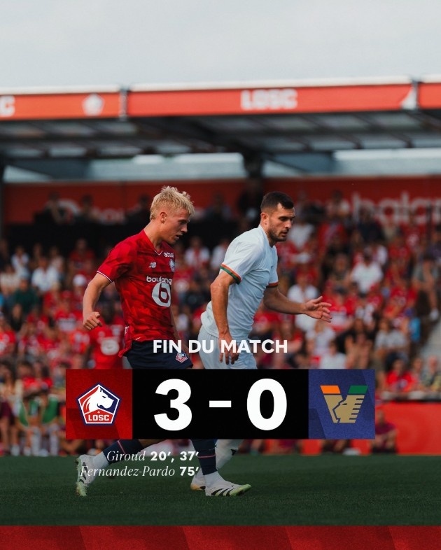 在里尔与威尼斯的季前友谊赛中,吉鲁第20分钟和第37分梅开二度,费尔南德斯-帕尔多第75分再入一球,里尔3-0打败敌手。