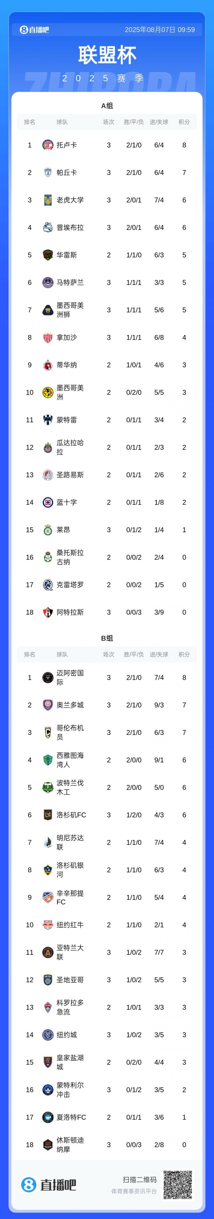 08月07日讯 定约杯小组赛B组第3轮,迈阿密海外3-1打败墨西哥好意思洲狮,最终小组赛3轮获取2胜1平(平局点球取胜积2分)的战绩,积8分奏凯锁定小组出线阅历。