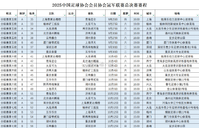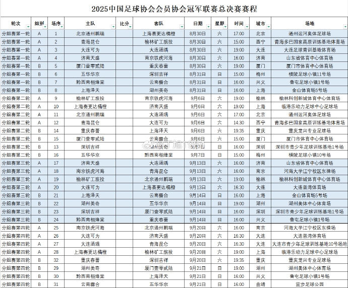 你的位置:欧洲杯足球比赛直播 > 意甲联赛 > 2025中国足球协会会员协会冠军联赛总决赛赛程出炉