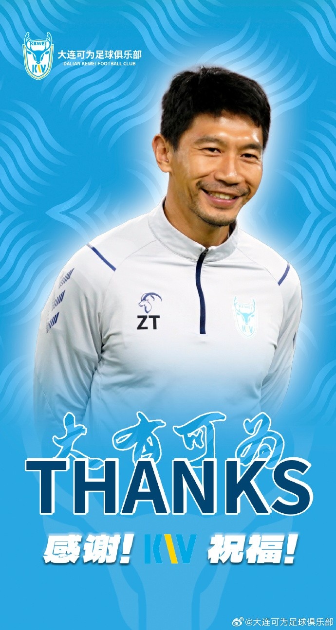 大连可为俱乐部官方公告写说念:经与朱挺教导本东说念主协商并收场一致,即日起,朱挺教导不再担任大连可为足球俱乐部一线队主西宾职务。
