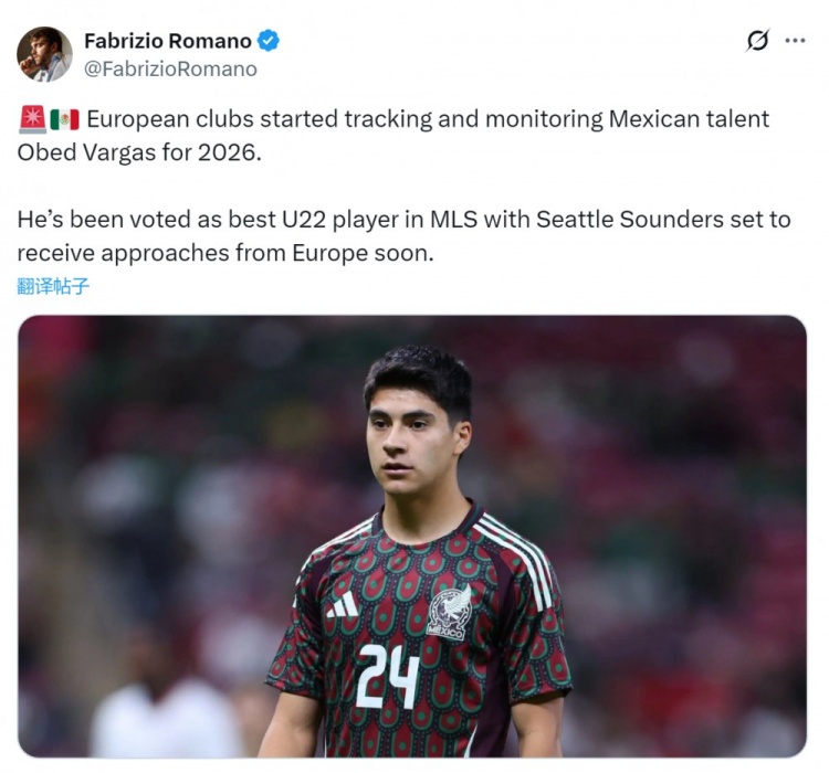 罗马诺披露,遵守于西雅图海湾东说念主的奥贝-巴尔加斯受到外界的关心,欧洲俱乐部启动跟踪考验他的发扬,将其列为2026年的潜在引援办法。