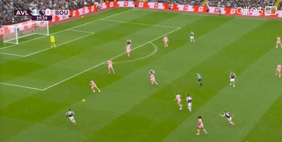 第40分钟,维拉前场围攻伯恩茅斯禁区,阿马杜-奥纳纳禁区外接球,拔脚就射,又是一脚全国波破门,维拉两球逾越。