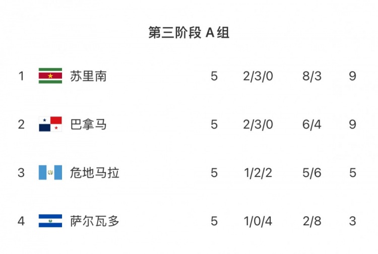 世外北好意思第三阶段A组第5轮,巴拿马3-2治服危地马拉,积分榜上,苏里南和巴拿马9分前二,危地马拉5分第三,提前一轮无缘天下杯。小组赛末轮,巴拿马将对阵萨尔瓦多,苏里南将对阵危地马拉,小组头名径直晋级天下杯。