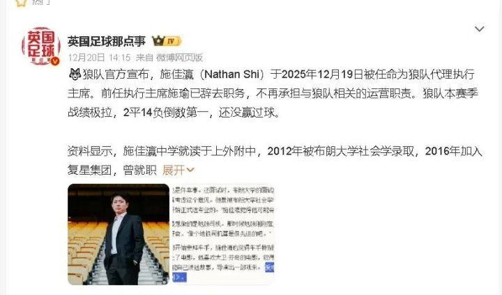 施佳瀛的加入确乎引来了不稀有地,这位年青东谈主降生优胜且经验丰富,18岁的时候就被合计是天之宠儿,去了好意思国的布朗大学读社会学,毕业后加入复星集团,从企业发展部到子公司代表,再到复星集团董事长的助理,短短几年时分辘集了挺多陶冶,不外他诚然经验亮眼,但年级与狼队刻下的恶运处境能否产生邃密的结合截止如故未知数,足球圈向来敬重资深陶冶,28岁的施佳瀛在改日一年半的掌舵能否征服现存的各类贫窭,率领这支球队爬出泥潭,这是好多东谈主心里的狐疑。