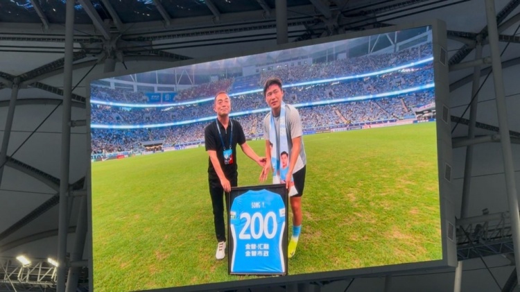 8月8日讯 据博主“从小等于大连球迷”报谈,今晚大连英博主场对阵成齐蓉城的赛前,大连英博俱乐部为宋岳颁发了做事生存200场记挂球衣。