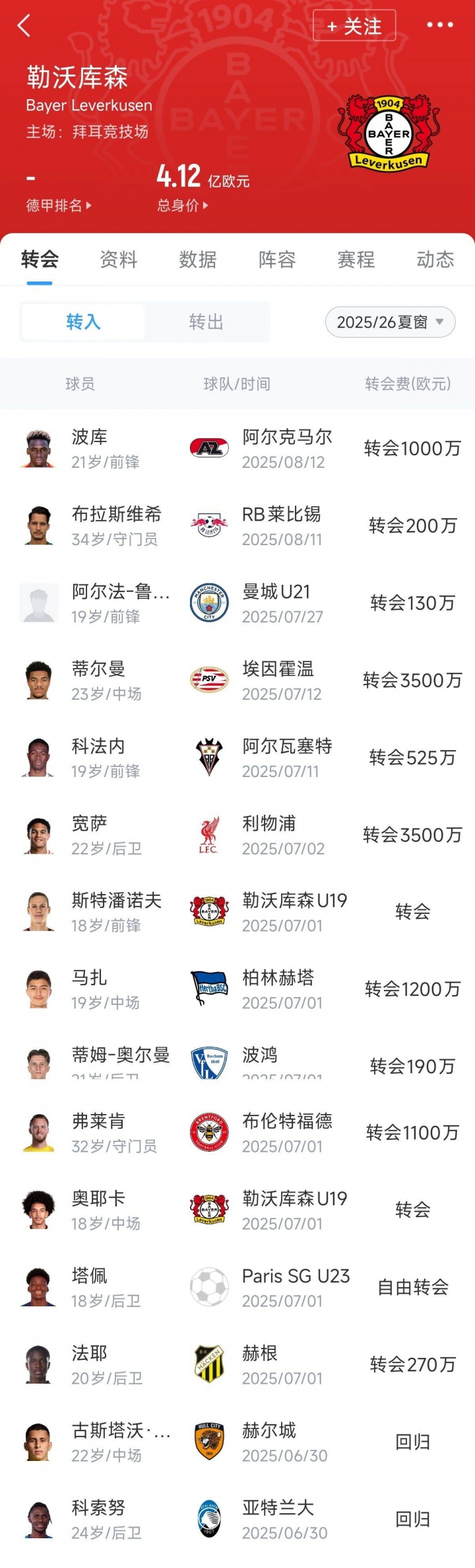 引进巴代之后,滕哈赫的戎行今夏开销将跨越1.4亿欧。药厂中枢流失严重的情况下,球队斥巨资打造全新戎行,新赛季勒沃库森值得期待。