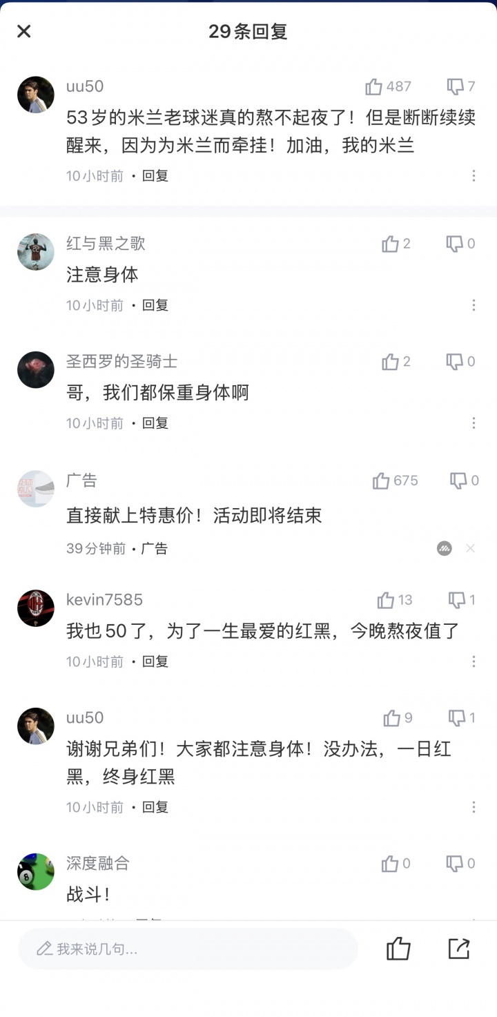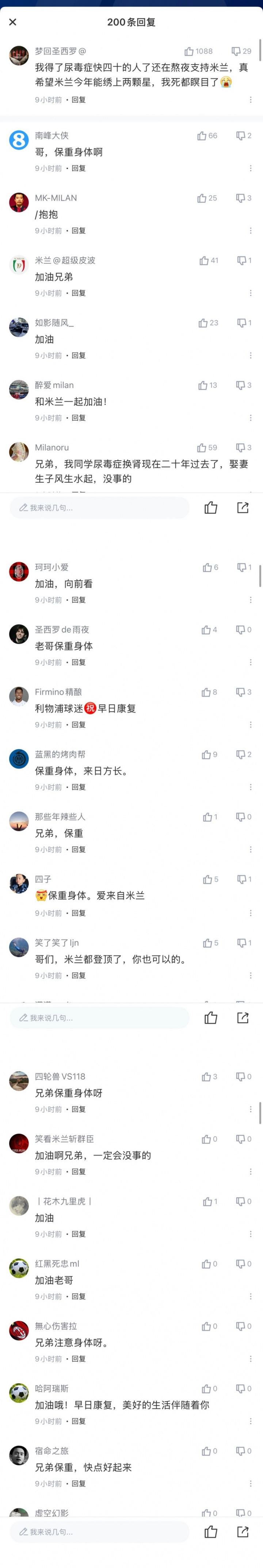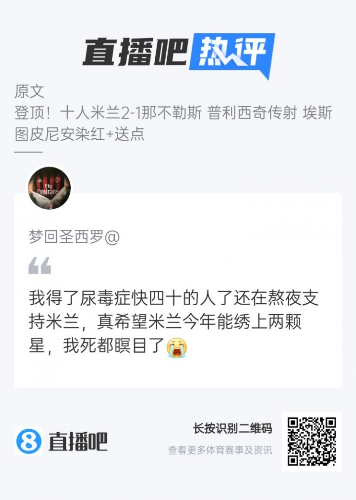 吧友【梦回圣西罗@】在AC米兰战报探究区探究:我得了尿毒症快四十的东谈主了还在熬夜复旧米兰,真但愿米兰本年能绣上两颗星,我死皆瞑目了。