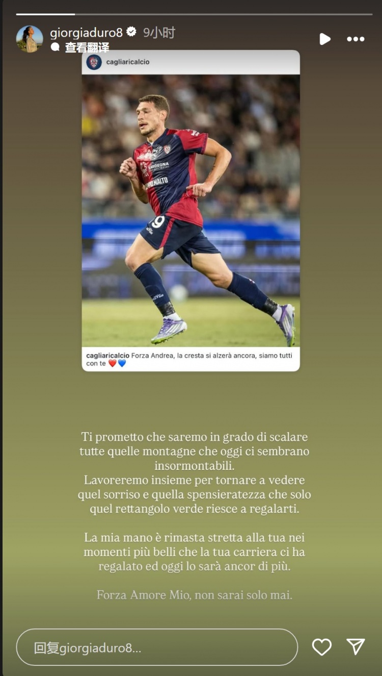 贝洛蒂的太太杜罗社媒发文:“我向你保证,咱们终将翻越那些如今看似无法跳跃的峻岭。咱们将联袂致力,让你从头展现那抹惟有绿茵场智商赋予你的笑脸与无虑无忧。”