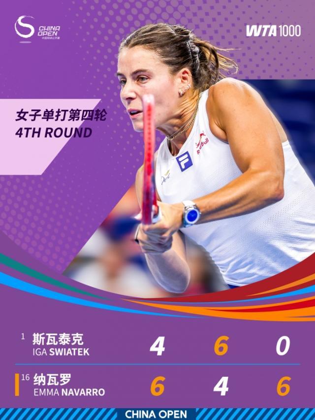 中网女单第四轮,16号种子纳瓦罗决胜盘送蛋,以6比4、4比6、6比0挑落头号种子、前赛会冠军斯瓦泰克,做事活命第三次打败宇宙前二,这亦然她第三次置身1000赛八强。