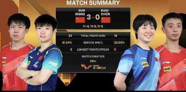 王楚钦/孙颖莎3比0礼服队友陈垣宇/蒯曼