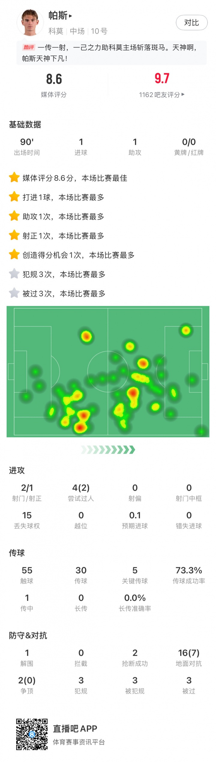 本场比赛除了传射让东谈主印象潜入以外,尼科-帕斯的抵挡也让东谈主惊诧。