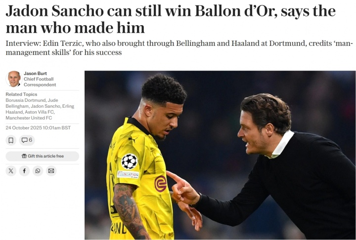 10月24日讯 英媒《逐日电讯报》采访了前多特主帅泰尔都奇,聊到了多名他曾同事过的高身价球员。其中关于桑乔,泰尔都奇默示“他也还有获得金球奖的契机”。