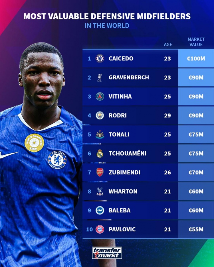 你的位置:欧洲杯足球比赛直播 > 英超球队 > 贯注型中场身价榜:凯塞多1亿欧居首,赫拉芬贝赫9000万欧