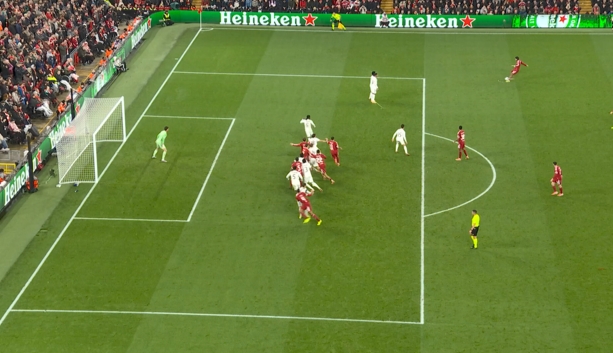 11月5日讯 欧冠第4轮利物浦vs皇马,索博轻易球开入禁区,麦卡利斯特头球破门!