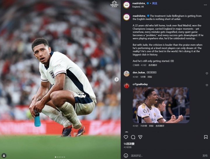 英格兰媒体对贝林厄姆的魄力透顶不公道。