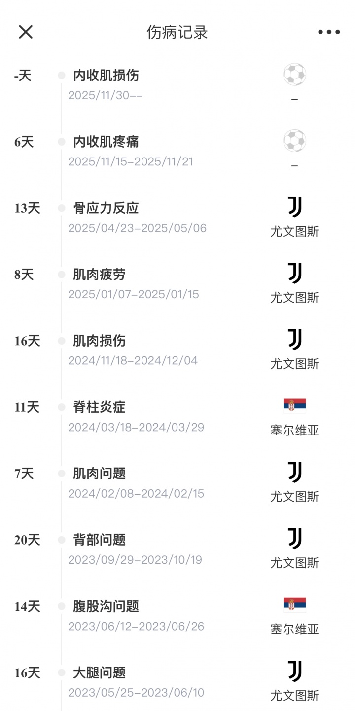 12月01日讯 尤文吏方公布弗拉霍维奇伤情,他的左侧长收肌肌肉肌腱连结处存在高档别损害。迪马济奥默示,弗拉霍维奇将至少缺席2-3个月,要是手术,缺席时分可能更久。