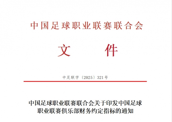 【联系】中足联官方:中超俱乐部单个财年总支拨不得超税前6亿,中甲2亿