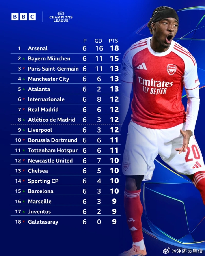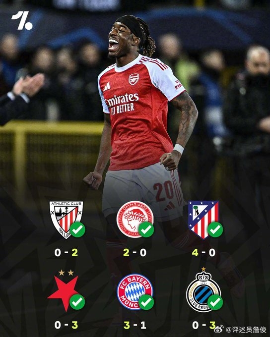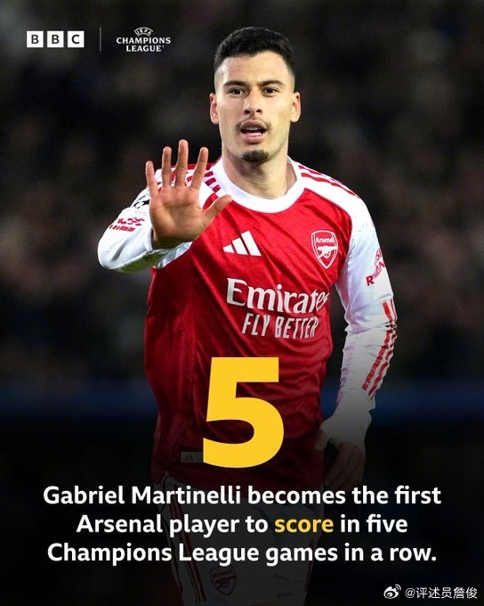 “阿森纳延续在欧冠霸榜,又一场完结零封的告捷,六战全胜仅丢一球。他们演出‘双马盘槽’:马杜埃凯天下波+独中两元,马丁内利成为俱乐部首位在欧冠流畅5场破门的球员。惟有三名16岁或更年青的英格兰球员在欧冠亮相过,他们皆是枪手,今晚16岁的中卫萨尔蒙迎来首秀。阿森纳队无惧后防地伤兵满营,首发的新中卫组合是因卡皮耶+诺尔高。