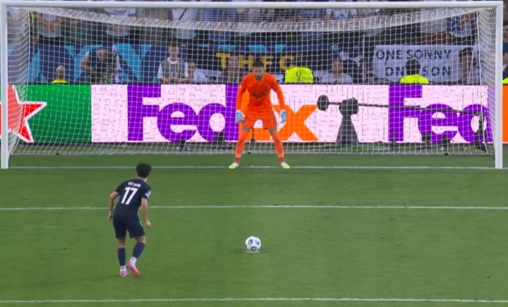 而热刺前卫特尔的罚点用时9.19秒,最终也偏出了球门。