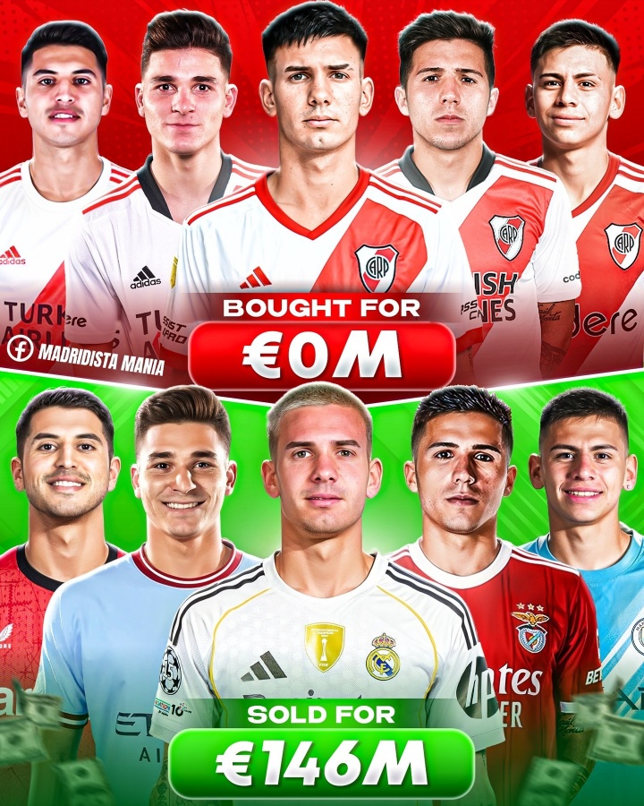 10月11日讯 阿尔瓦雷斯、恩佐、马斯坦托诺、埃切维里和帕拉西奥斯均出自河床青训,他们共计为河床带来了1.46亿欧的转会费。