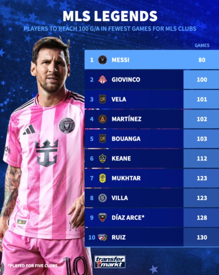 10月11日讯 离开欧洲足坛后,梅西加盟了好意思国大定约的迈阿密海外,阿根廷巨星保握了细腻的气象。在为迈阿密出战80场比赛的情况下,梅西已平直参与101球,他成为好意思职联俱乐部历史参与百球所用场次最少球员。
