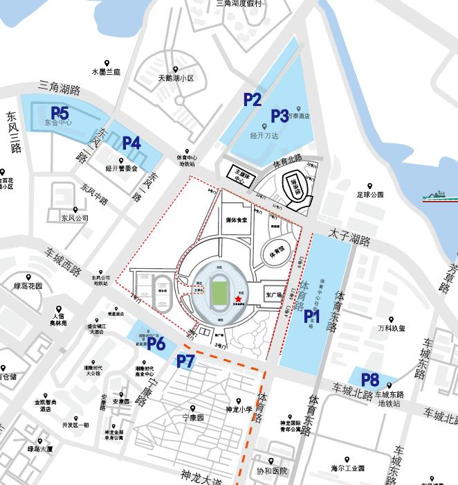 武汉体育中心左近共 有8 处各人泊车场: