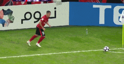 第35分钟,主罚左路角球到禁区后点,杨帅头球摆渡到点球点隔壁,周定洋侧身凌空抽射破门,蓉城1-0江原。